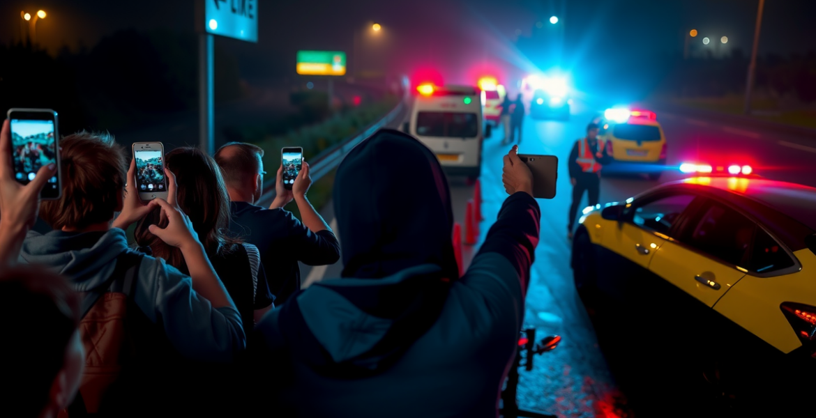 Politie ergert zich aan filmende omstanders na dodelijk ongeluk De politie heeft flink zitten balen van omstanders die na een ernstig ongeluk zondagnacht met hun telefoons stonden te filmen. Bij het ongeluk op de A59 bij Waalwijk overleed een 81-jarige vrouw. Een 24-jarige man en een 23-jarige vrouw uit Arnhem raakten gewond. Het was druk