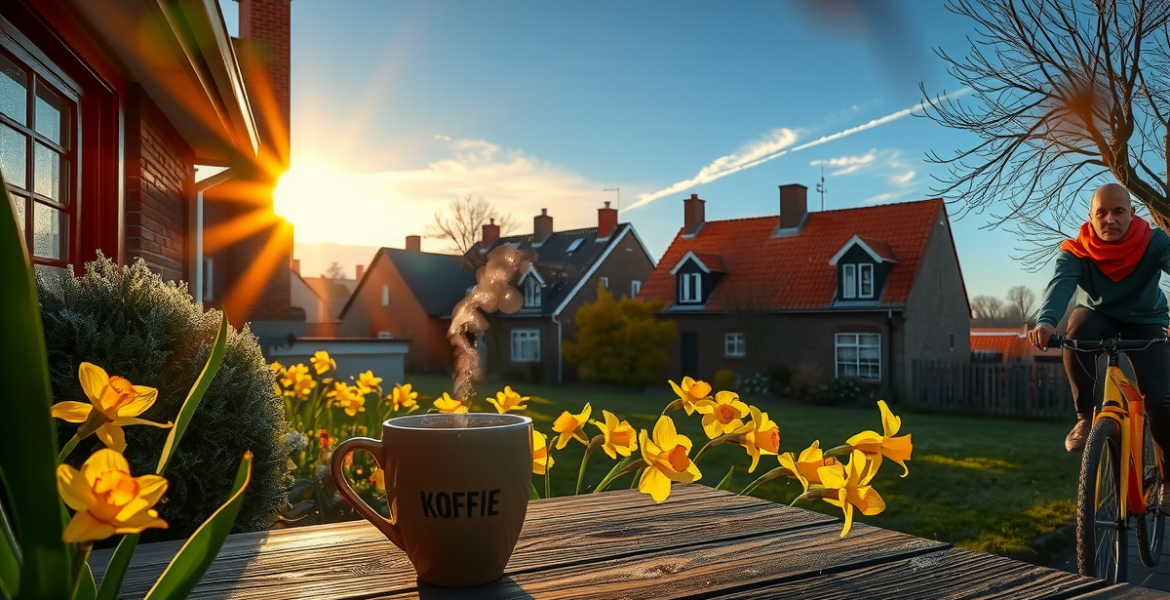 Zon, zon, zon! Vanda haalt (bijna) zomerse 20 graden binnen Vanochtend knalde de zon meteen door het giwikje heen en maakte alles feestelijk geel. Oké, het was even fris: in Drenthe tikte de thermometer in de hut nog even aan bij -4,9 °C en op de tuinmat lag een wit laagje. Maar zodra de zon